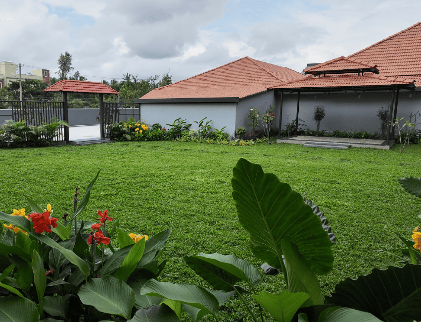 Beautifully maintained outdoor space designed for intimate gatherings and serene moments. Nestled amidst greenery, this cozy lawn offers a peaceful retreat where simplicity meets elegance.